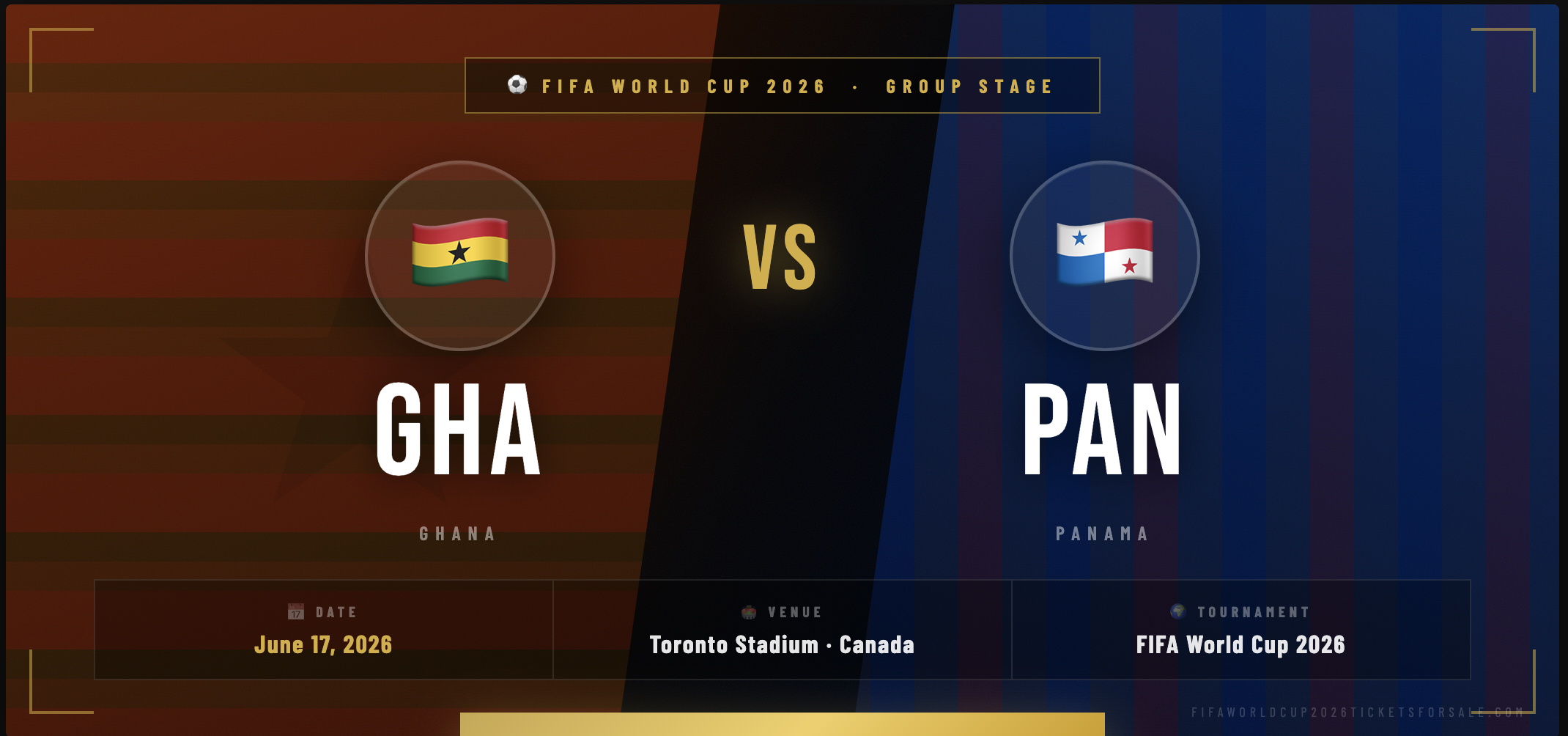 Ghana ๐ฌ๐ญ vs Panama Tickets โ FIFA World Cup 2026 Toronto | Group Stage